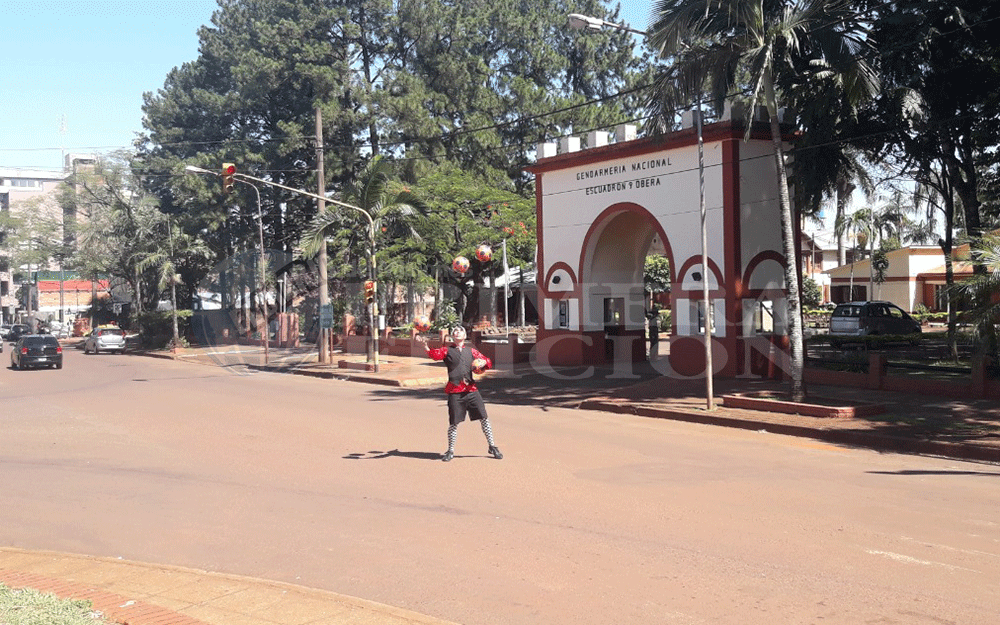 Nicolás F. Girotti, más conocido como el “Payaso Paqueta”, es un artista callejero y circense oriundo de Catriel, Río Negro. Llegó a Oberá hace un año, para quedarse un tiempo y seguir viaje. Sus planes se truncaron con la pandemia y debió quedarse en la ciudad. “Fue casualidad quedarme, por la pandemia, por suerte me va bien y la gente me ayuda mucho en lo que es mi arte callejero”, comentó. “Vine a participar con el grupo Caciquecirco, hicimos presentaciones por los barrios, fue muy lindo, después se paró todo por el COVID. Mi idea era seguir camino, pero bueno, aquí estoy”.
