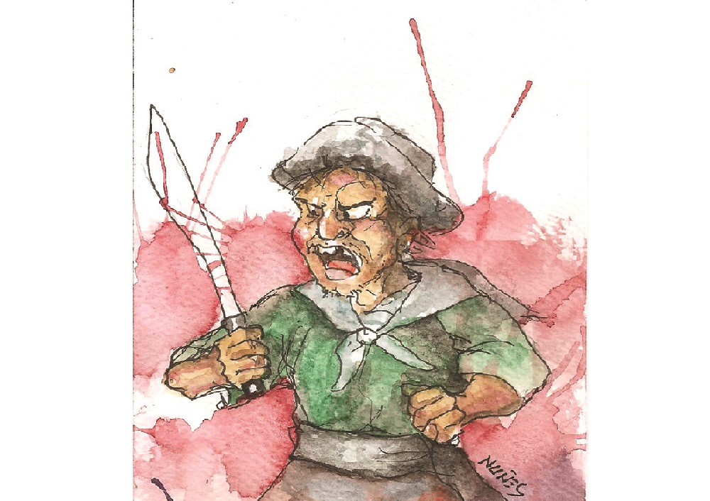 Encaró en diagonal como lo hace un alfil para vencer a su oponente y en el tablero de la vida anunció su jaque la fatalidad. En un sólo movimiento de derecha a izquierda, el veterano jornalero “bautizó” su nueva herramienta de trabajo asestándole un golpe raudo, preciso y seco en el cuello de su rival, como si se tratara de una caña de gran diámetro.