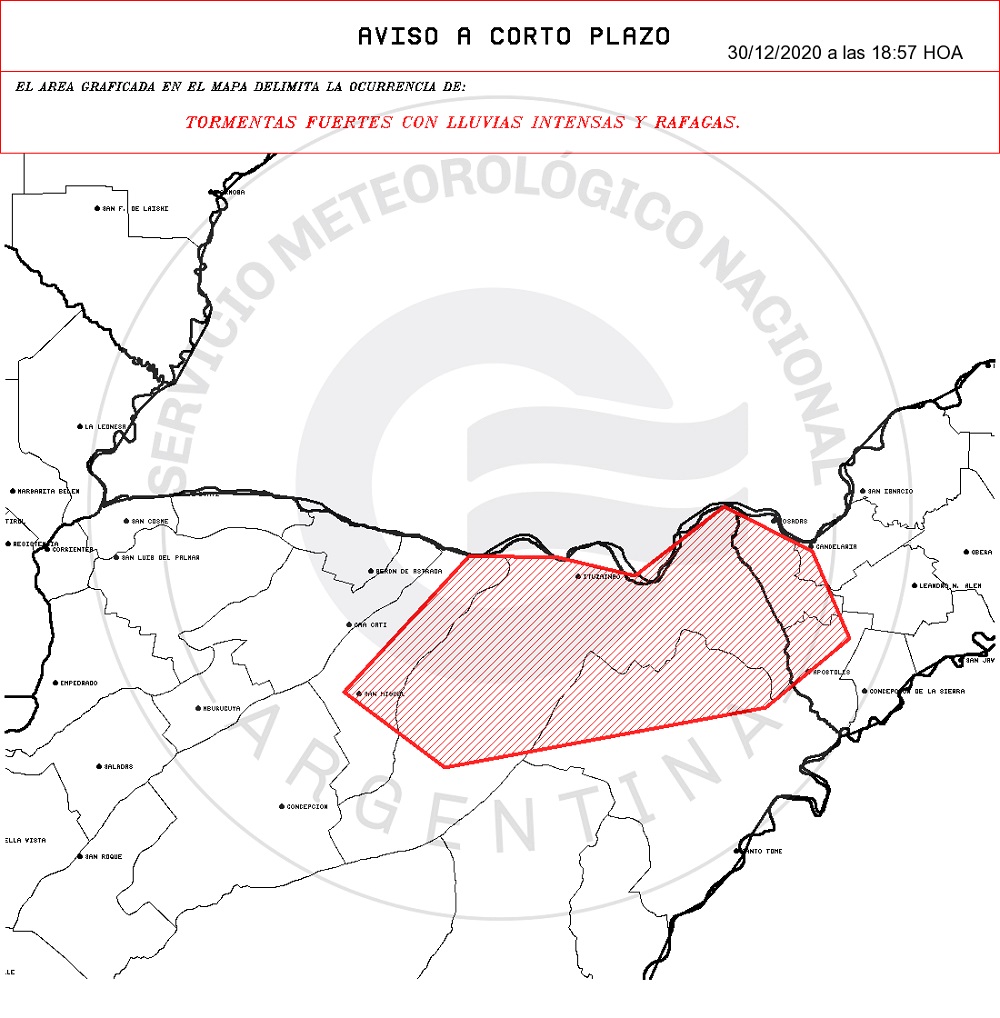 La advertencia rige también para Ituzaingó, San Miguel y Santo Tomé, en Corrientes.