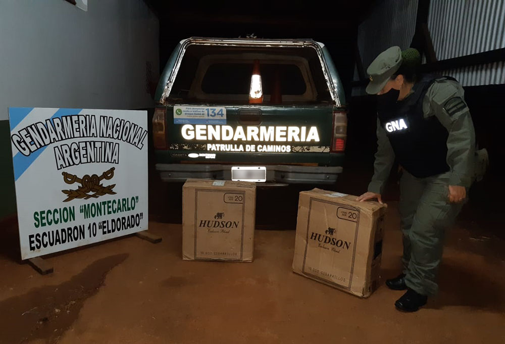 El primero de estos procedimientos tuvo lugar en las primeras horas del lunes 4, cuando personal de Gendarmería pertenecientes al Escuadrón 10 “Eldorado” quienes se encontraba realizando un patrullaje pedestre en zona de su responsabilidad, divisaron a dos hombres quienes transportando sobre sus hombros cajas de cigarrillos de origen extranjero.