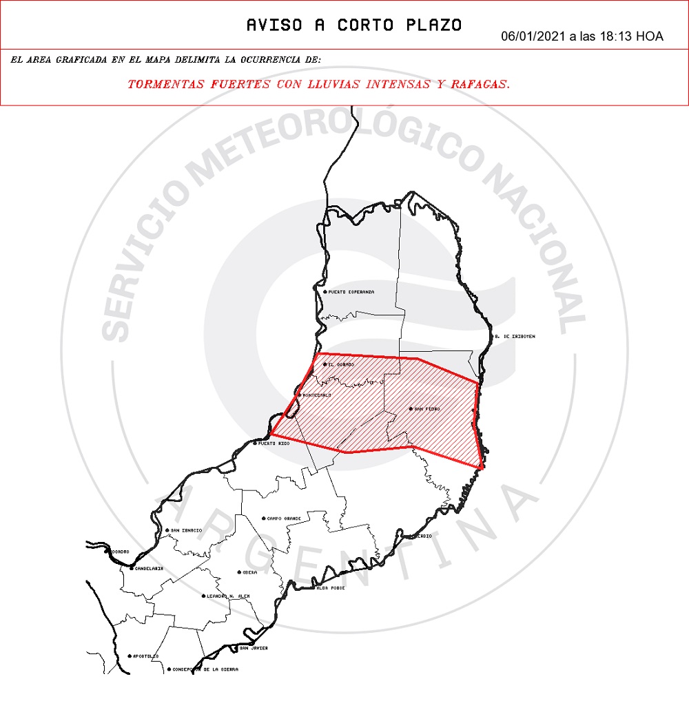 En concreto, el alerta rige para los departamentos Eldorado, Montecarlo, Guaraní y San Pedro.