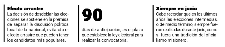 En caso de que Misiones vote antes que la Nación, la decisión también se sostiene en la premisa de separar la discusión política local de la nacional, evitando el efecto arrastre que pueden tener los candidatos más populares que perforan en la opinión pública local a través de los grandes medios masivos de comunicación como canales, radios y diarios de tirada nacional.