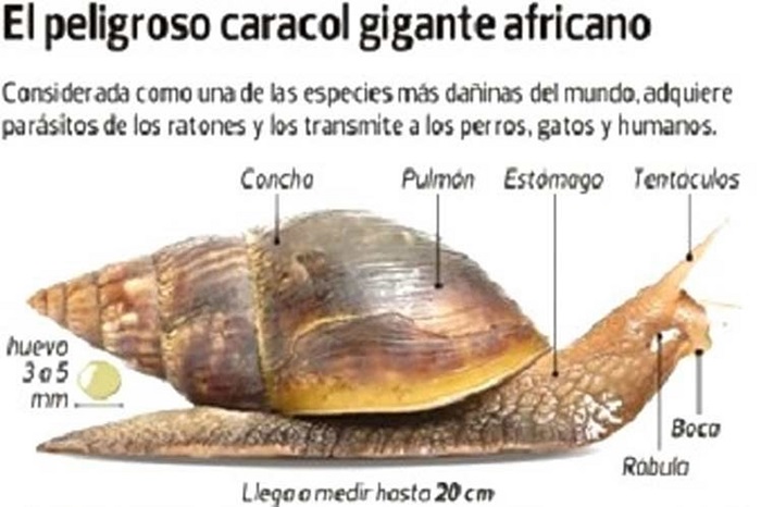 Dichos parásitos están presentes en la baba del caracol y pueden contaminar frutas y verduras, que en el caso de no ser lavadas correctamente pueden causar enfermedades de origen zoonótico a las personas.