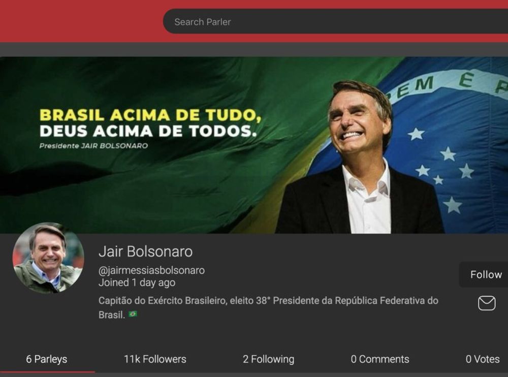 Parler ha tenido éxito entre el público conservador con la propuesta de no censurar las publicaciones de sus usuarios. Jair Bolsonaro y sus tres hijos mayores se hicieron cargo de la plataforma en julio de 2020.