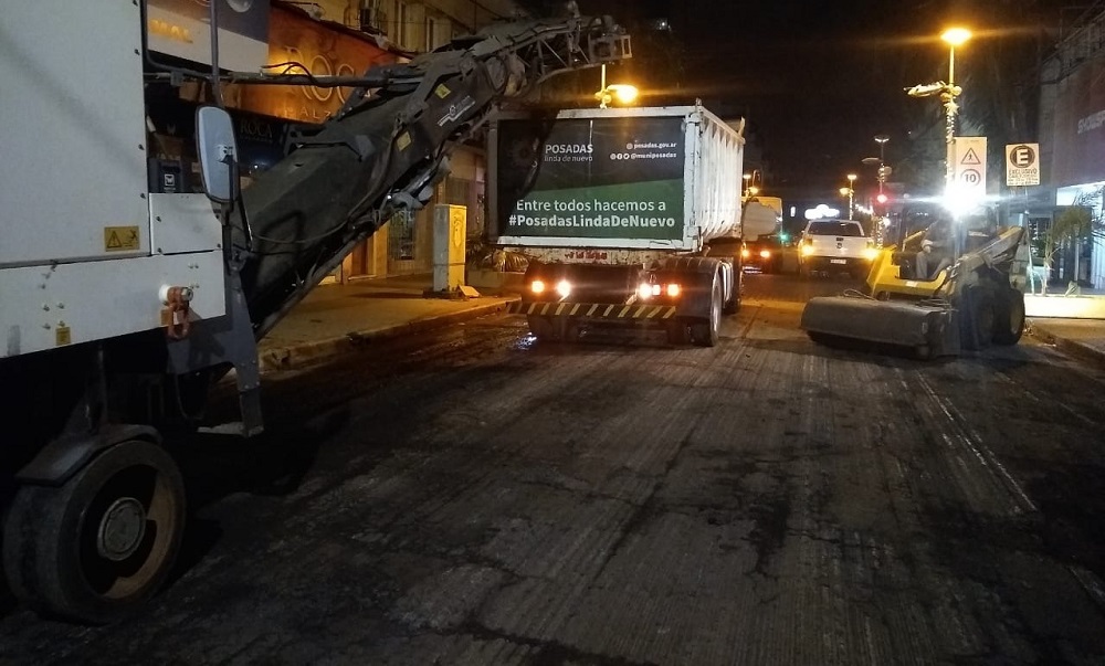 Con la intención de continuar y mejorar la circulación dentro del casco céntrico de la ciudad de Posadas, la Municipalidad local comenzó con trabajos de repavimentación durante la noche en distintas calles.