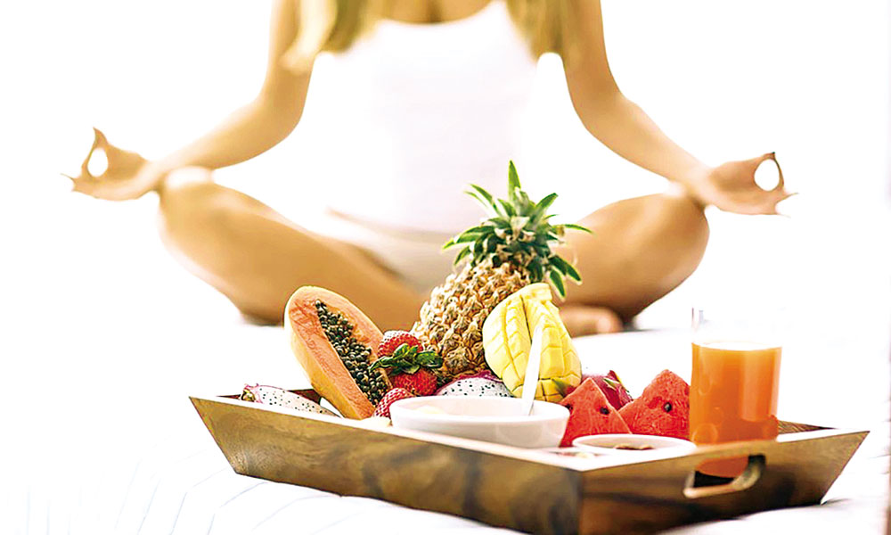 Si bien cada condición personal habrá de encontrar el régimen que mejor le siente, la Maestra nos recordaba que nuestra disciplina, el Yoga, recomienda no comer con exceso; evitar alimentos muertos; consumir bastante cantidad de frutas frescas, vegetales y ensaladas -siempre que los alimentos crudos no estén contraindicados -; beber mucha agua y respirar aire puro. Porque sabemos que los alimentos frescos, puros y naturales contienen todas las vitaminas necesarias, proteínas, minerales, aminoácidos, enzimas y sustancias químicas vitales para nuestro metabolismo, que es el tema para la próxima nota.