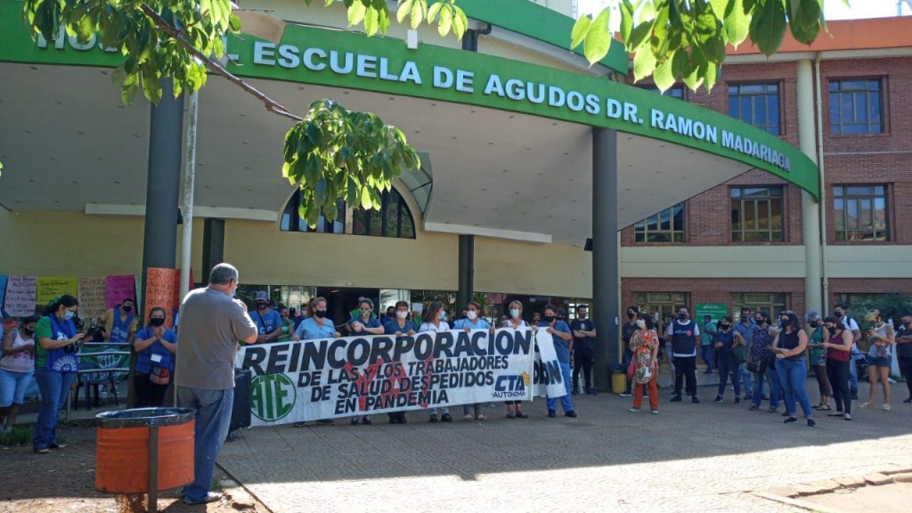 Este jueves se cumplió una nueva jornada de protestas en las calles internas del Hospital Escuela de Agudos Dr. Ramón Madariaga por la reincorporación de  25 trabajadores sanitarios despedidos.