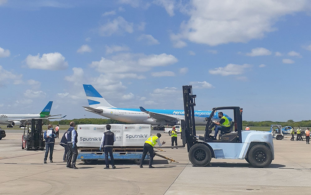 El vuelo AR1601 de Aerolíneas Argentinas con el segundo componente de las vacunas Sputnik V arribó a las 10.48 de hoy al aeropuerto Internacional de Ezeiza, una hora antes de lo previsto, procedente de la estación aérea Internacional Sheremétievo, en Moscú.