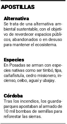 Crece el interés de los vecinos, como así también el uso de las bombas de semillas. Se trata de una novedosa técnica que puede ser usada para la reforestación o el embellecimiento de los espacios públicos y también es usada para llegar a lugares de difícil acceso porque se arrojan.