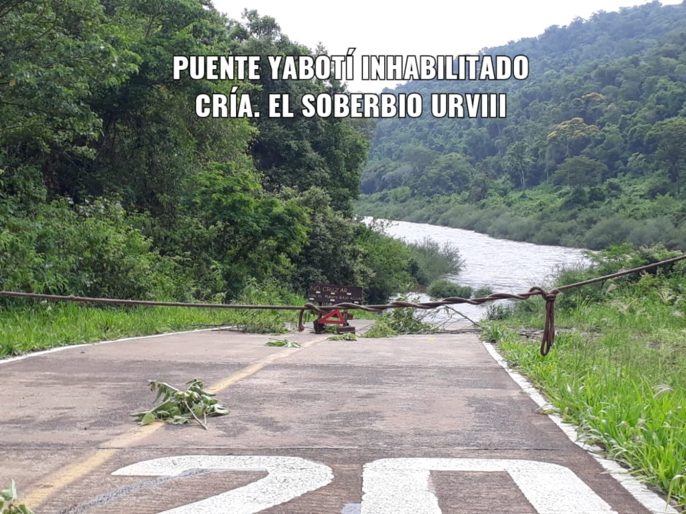 Cerca de las 10.30 de este domingo la policía tomó conocimiento de que debido a las precipitaciones que se registraron ayer, el puente sobre el arroyo Yabotí, que comunica exclusivamente con el Parque Provincial Moconá, se encuentra sin acceso debido a la creciente del mencionado arroyo.