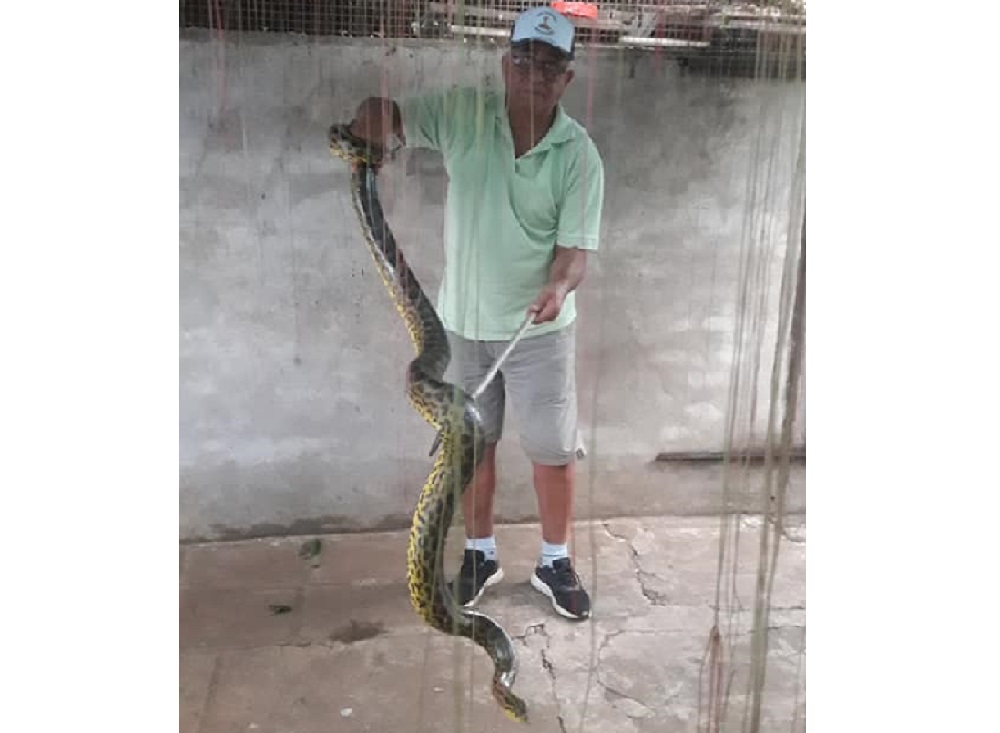 Este domingo una boa constrictora curiyú o anaconda amarilla (eunectes notaeus), de unos tres metros de largo y más de 15 kilos, fue rescatada en la zona de Nemesio Parma, en la ciudad de Posadas y a orillas del río Paraná.
