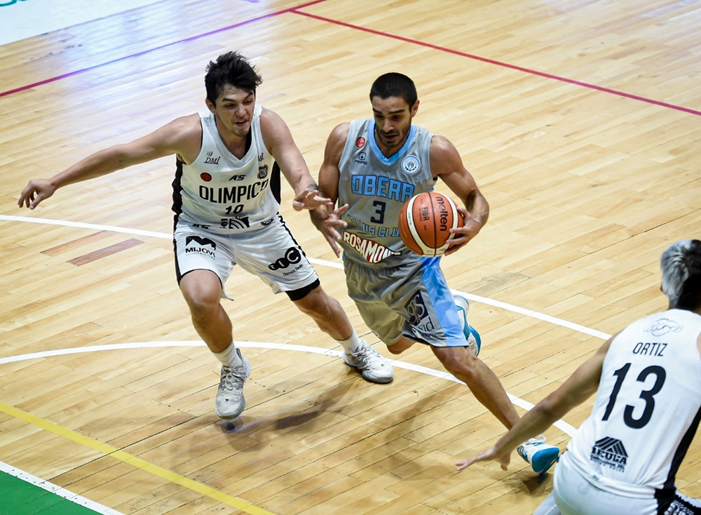 En el Celeste, Agustín Brocal se destacó con un par de triples en los primeros diez minutos, pero sufrió varias pérdidas y mostró complicaciones a la hora de manejar la naranja. Olímpico se fue al descanso largo arriba, por 45-34.