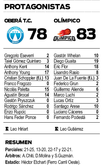 Así ganó ese parcial y el último, ahora con la destacada actuación de uno de los refuerzos, Nico Paletta (llegó en reemplazo de Esteban Cantarutti), pero Olímpico respondió, aprovechó los puntos que había conseguido en la primera parte y se llevó la victoria.