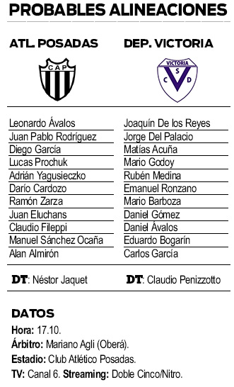 Un partido clave, sin margen para el error, es el que protagonizará hoy miércoles Atlético Posadas detrás del sueño del ascenso. Desde las 17.10, El Decano recibirá en casa a Deportivo Victoria de Curuzú Cuatiá, por la tercera fecha del Torneo Regional Amateur de Transición, en busca de un triunfo que lo acerque al líder Guaraní Antonio Franco, que tiene fecha libre y al que enfrentará el finde venidero, también en Tajamar.