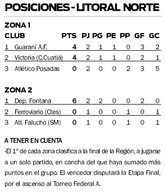 La derrota ante Guaraní condicionó a Atlético Posadas, por eso ayer salió decidido a ganar pero no encontró los caminos para vulnerar a un correcto Deportivo Victoria de Curuzú Cuatiá (Corrientes), que se impuso por 2-1 y se llevó tres puntos muy importantes para subirse a la cima de la zona 1 Litoral Norte del Torneo Regional Federal Amateur de fútbol.