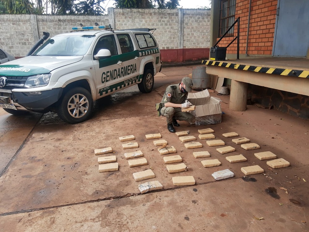 Efectivos del Escuadrón 13 “ Puerto Iguazú” de Gendarmería Nacional realizaban tareas de patrullaje en la ciudad de las “Cataratas”, cuando fueron alertados por personas del lugar, sobre la existencia de un bulto sospechoso. La droga estaba distribuida en 33 paquetes y se encontraba oculta en una caja.