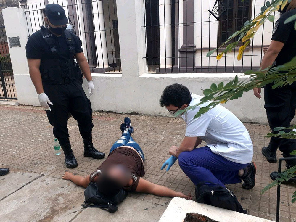 Este martes por la mañana, en la intersección de las calles Córdoba y San Lorenzo de Posadas, cadetes del Instituto Universitario de Seguridad de la Policía de Misiones asistieron a una mujer que se desvaneció sobre el pavimento.