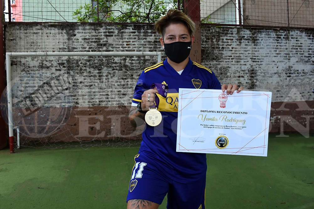 Y también obtuvo los mimos de la gente de su querido club Huracán, que ayer realizó un homenaje a su jugadora preferida. De la mano del entrenador Héctor “Chino” Torres, el Globo le regaló todo su cariño a Yamila. Además, le entregaron un diploma como reconocimiento a todo su esfuerzo y por el campeonato logrado con Boca Juniors.