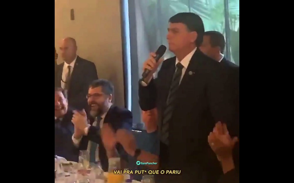 Si bien el almuerzo era a puertas cerradas, a Bolsonaro lo estaban filmando y rápidamente los insultos se viralizaron en las redes sociales. El primero en postearlo fue el periodista Samuel Pancher quien lo hizo público en su cuenta de Twitter: “El presidente Bolsonaro cerró hoy un restaurante de carnes en Brasilia para un evento privado con artistas. Tuve acceso a las imágenes. Dijo que la leche condensada es “para meterle en el culo a la prensa”.