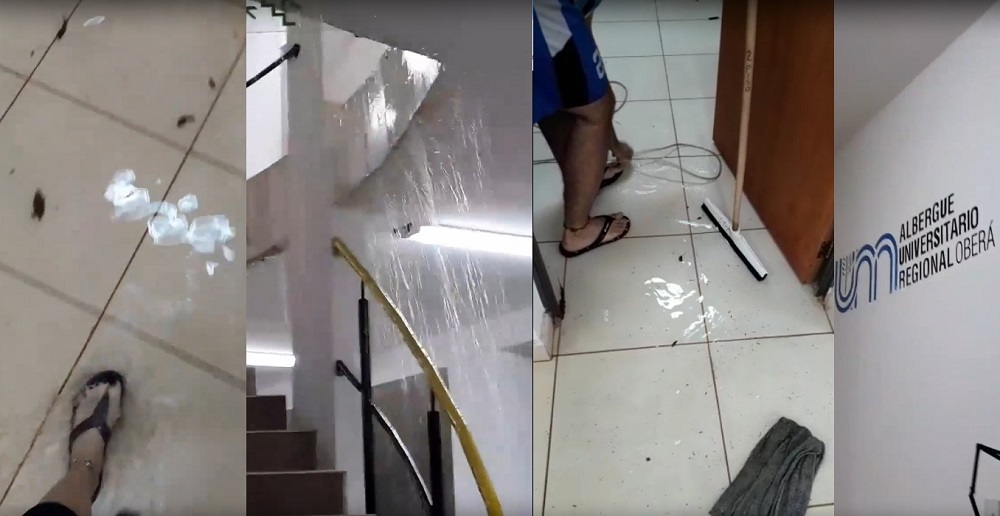 Desde el pasado domingo Oberá sufre intensas lluvias, al igual que otros puntos de la provincia, lo cual afecta a gran parte de la población, y el albergue de la Universidad Nacional de Misiones (UNaM) no es la excepción, se inunda y sufre varias fallas edilicias.