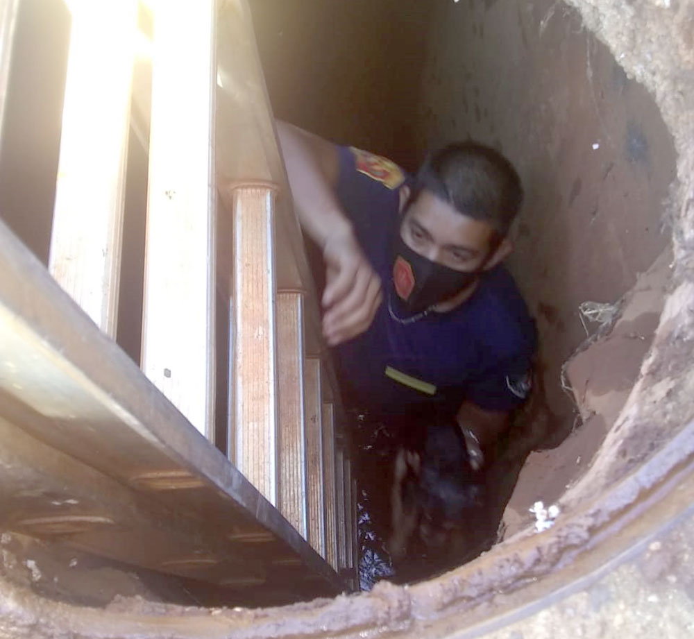 Gracias a la rápida intervención de efectivos de la división Bomberos de Garupá, un pequeño perro callejero de raza mestiza logró salir con vida, luego de caer a un desagüe cloacal ubicado en inmediaciones del mercado de La Salada.