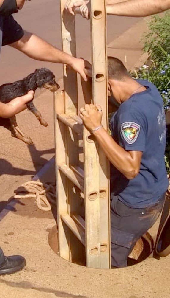 Gracias a la rápida intervención de efectivos de la división Bomberos de Garupá, un pequeño perro callejero de raza mestiza logró salir con vida, luego de caer a un desagüe cloacal ubicado en inmediaciones del mercado de La Salada.