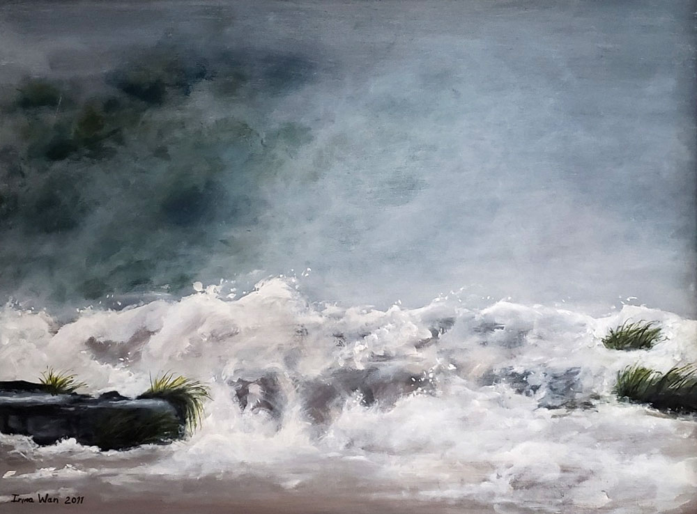 Las pinturas forman parte de paisajes construidos, articulados en damero, como partes de un todo más allá de las partes. Según comentó Irina es un proyecto que inició en el 2011, un Word in progress, que tiene por objeto poner el foco de la mirada sobre el agua, elemento vital para la vida y de esta manera suscitar la conciencia y la importancia de este recurso.
