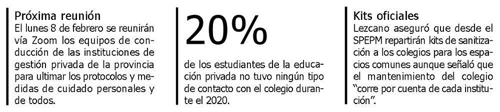 Además, Lezcano mencionó que espera que este año continúe el programa provincial “Ahora Colegios” que durante el 2020 “significó un alivio para las familias pero también permitió a las entidades propietarias contar con los recursos para la gestión”.