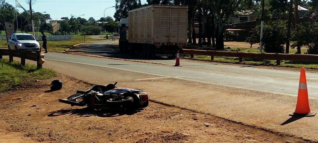 Nuevamente la imprudencia fue protagonista en las rutas de Misiones y se cobró otra vida en un siniestro vial. Este viernes por la tarde un joven motociclista de 17 años perdió la vida de camino al hospital luego de chocar contra un camión, a metros del ingreso a la ciudad de San Vicente.