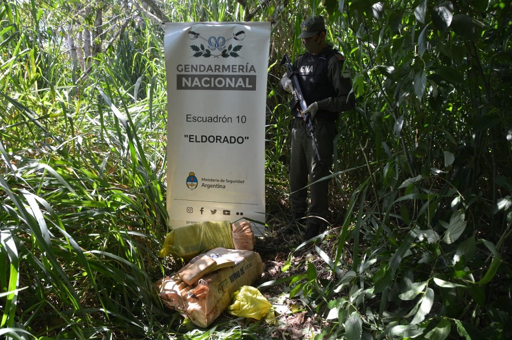 Durante la tarde del sábado, efectivos de la Sección “Esperanza” de Gendarmería Nacional, dependiente del Escuadrón 10 “Eldorado”, encontró dos bultos con droga que estaban escondidos entre la maleza.