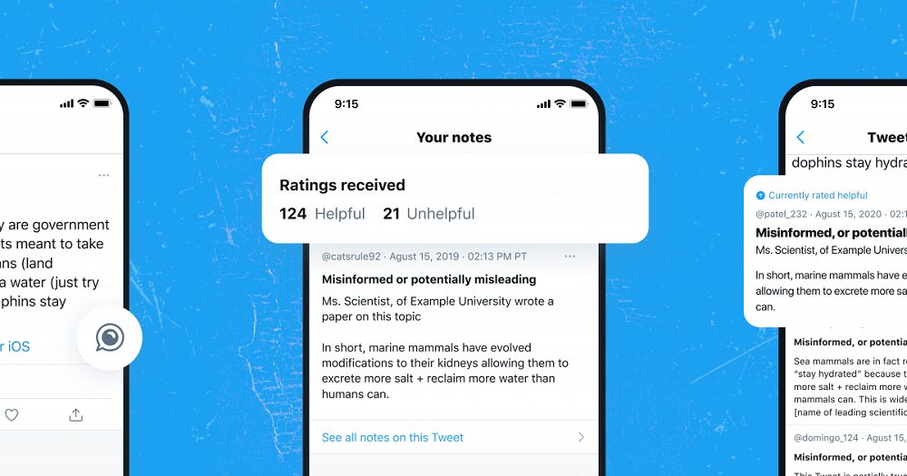 Twitter considera que este nuevo servicio tiene el potencial de advertir rápidamente de que un tweet difunde información engañosa. Las notas que los usuarios introduzcan, siempre que exista un consenso de un conjunto amplio y diverso de colaboradores, aparecerán directamente en los tuits, para que las personas que accedan a estas informaciones vean la advertencia de que se trata de una información engañosa.