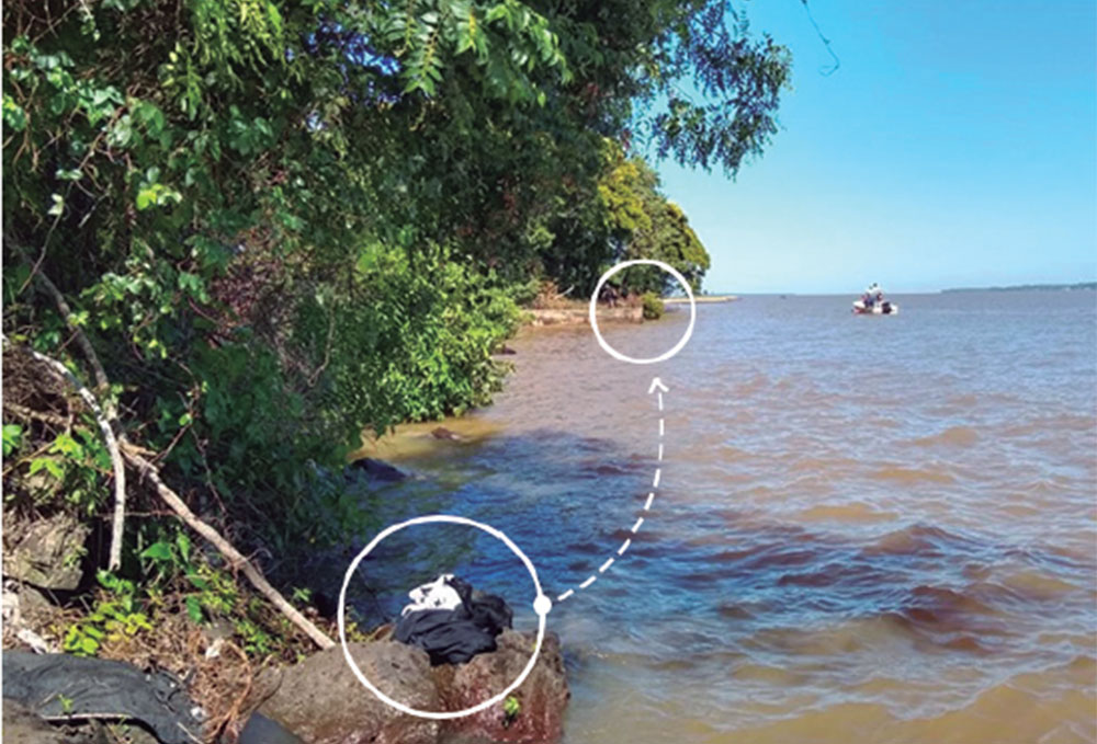 TRAYECTO. Los efectivos nadaron unos 30 metros hasta alcanzar a los fugitivos. En unas piedras dejaron sus uniformes y borcegos.