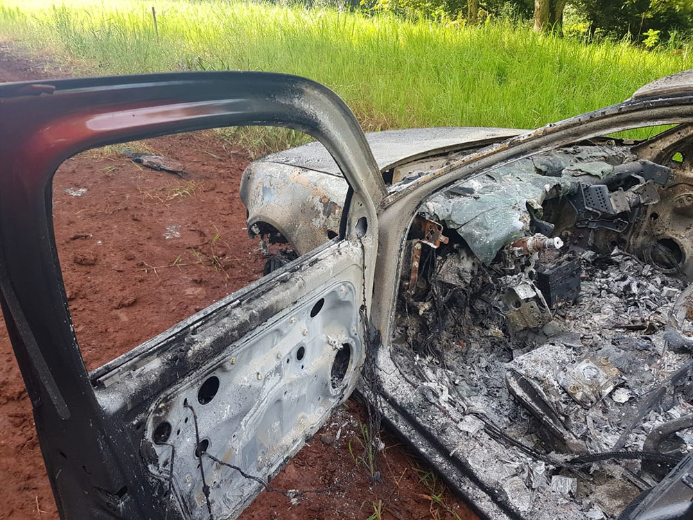 El hecho fue denunciado por un llamado anónimo al 911 este miércoles a las 6.30. De inmediato, una comisión policial acudió al Paraje Mariposa, zona rural distante a 23 kilómetros del ejido urbano de Garuhapé, jurisdicción de la Unidad Regional IV Puerto Rico, donde halló un Volkswagen Bora consumido por las llamas y sin ocupantes.