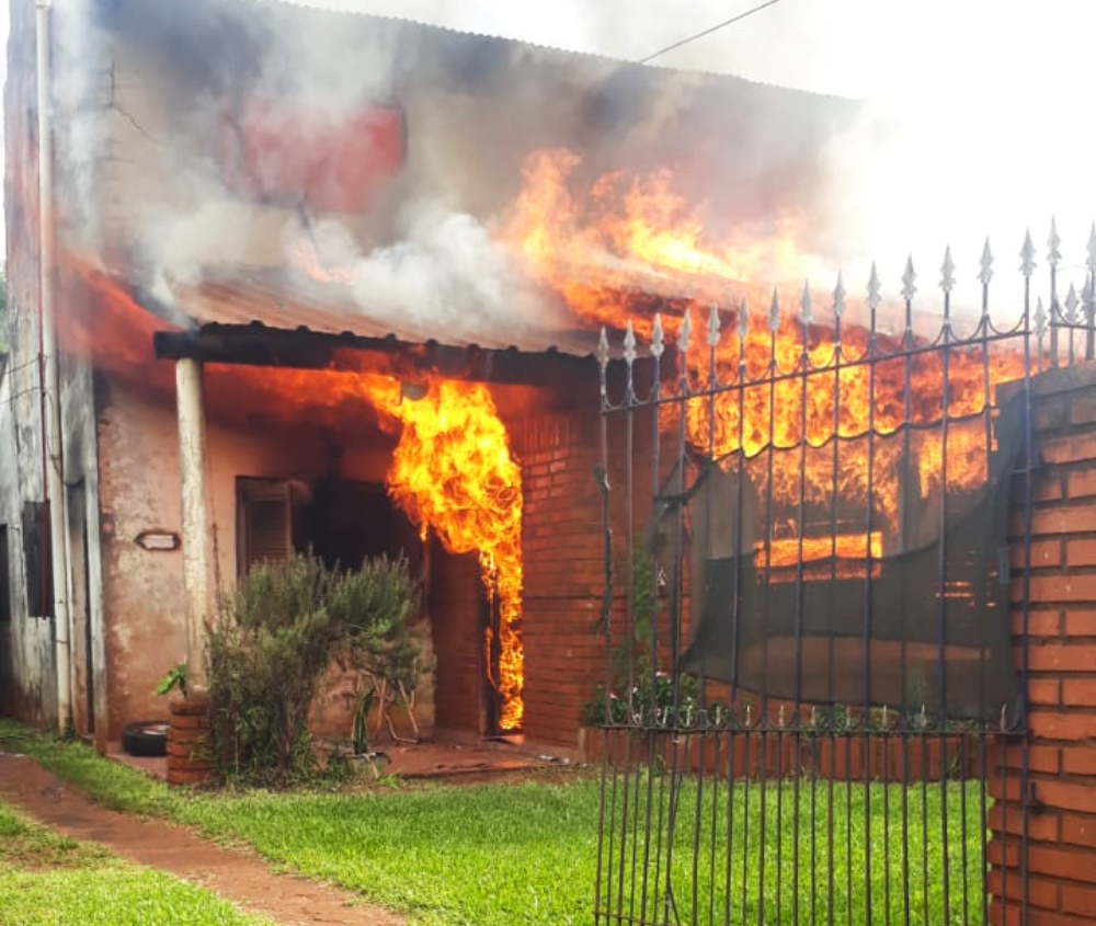 Un siniestro consumió casi toda una vivienda sobre la la avenida Ituzaingó casi Zapiola de Posadas. Las llamas se extendieron en gran parte del inmueble de dos plantas.