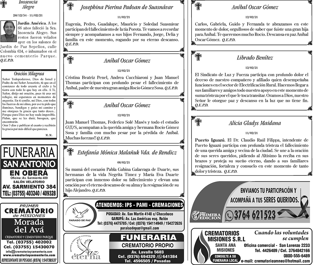 Tags: Fúnebres 13-02-2021