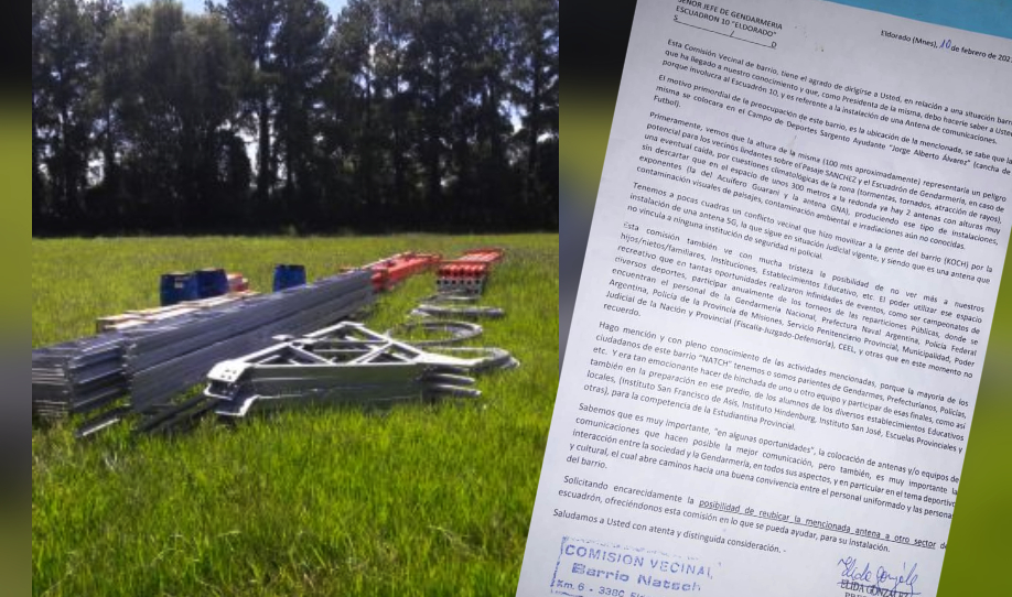 En la nota que presentaron a las autoridades de Gendarmería Nacional, los vecinos explican también que “muy cerca de nuestro barrio ya hay dos antenas instaladas, la del Acuífero Guaraní y la de GNA que están a 300 metros a la redonda de nuestro barrio, de las cuales se desconoce las consecuencias para el medio ambiente y para las personas por la instalación de las mismas”. Además destacan en la nota lo “triste” que sería para el barrio perder este lugar de encuentros deportivos y festivos.