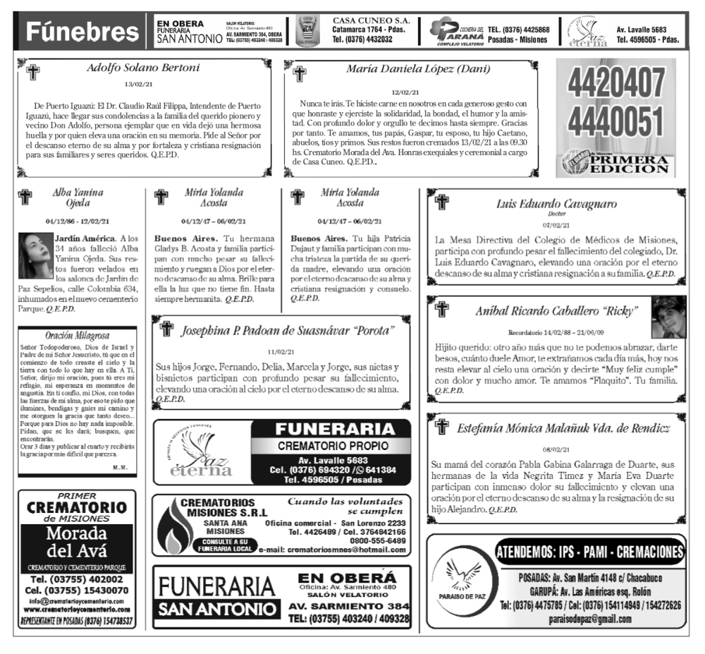 Fúnebres 14-02-2021