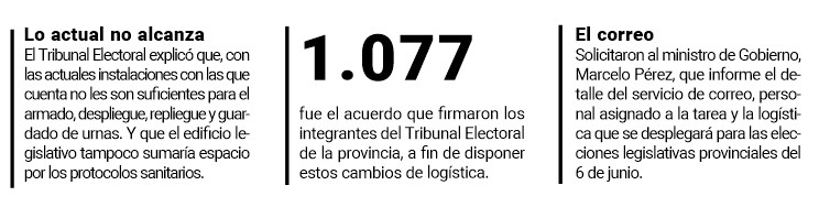 En otro tramo del acta acuerdo 1.077 del pasado jueves, el Tribunal Electoral solicitó al Ministerio de Gobierno de la provincia “que requiera al servicio de correo a contratar, el detalle de la logística a llevar adelante en cuanto el transporte que ha de utilizar para la tarea requerida, y oportunamente informe el personal asignado, y las medidas de seguridad y sanitarias previstas” para todo el proceso eleccionario.