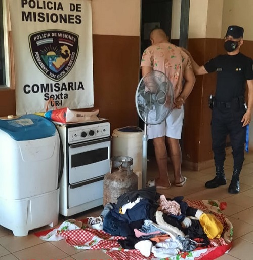 Efectivos de la comisaría 6ª rastrillaron la zona y de esa fora hallaron y detuvieron al acusado, quien tenía en su poder un lavarropas, un ventilador, un secarropas, una cocina, una garrafa, dos pares de zapatillas y prendas de vestir, objetos que fueron secuestrados.