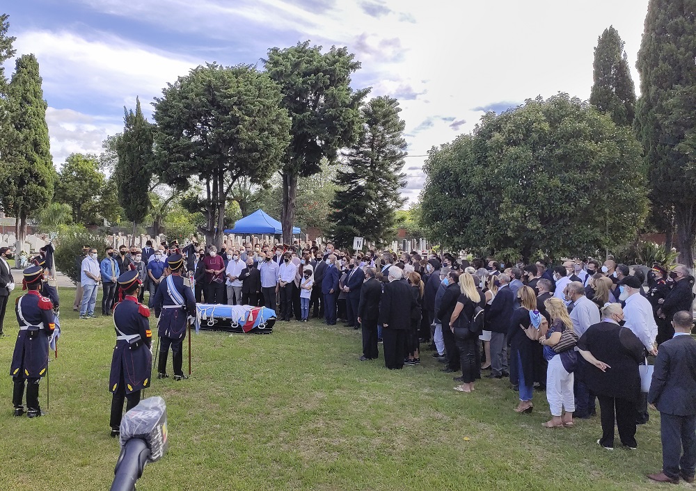 El féretro fue escoltado por el Regimiento de Granaderos a Caballo, que le rindió honores por su condición de ex presidente, mientras que varios autos de la Policía Federal integraron la caravana que acompañó el traslado hacia el cementerio.