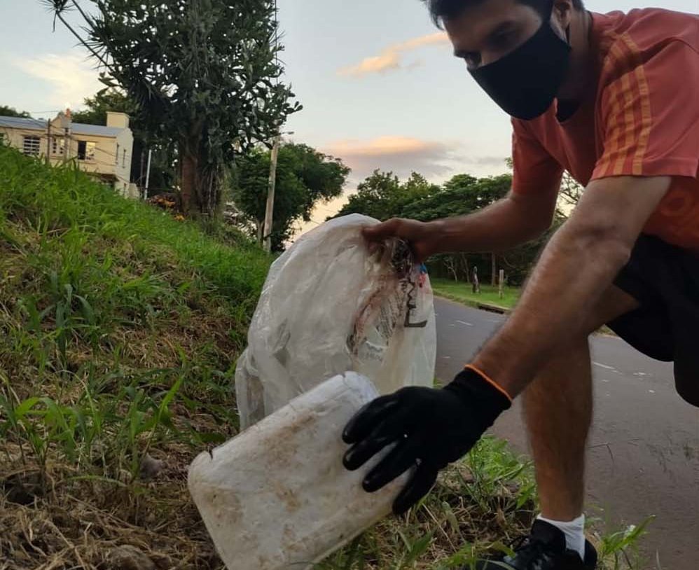 En Posadas, la propuesta es impulsada en las redes sociales por el ambientalista Fernando Santacruz quien sostiene que “es una práctica fácil de hacer, solamente debemos llevar guantes y una bolsa, mientras nos movemos recogemos los residuos”, detalló Santacruz creador y primer responsable de Vecino Sustentable.