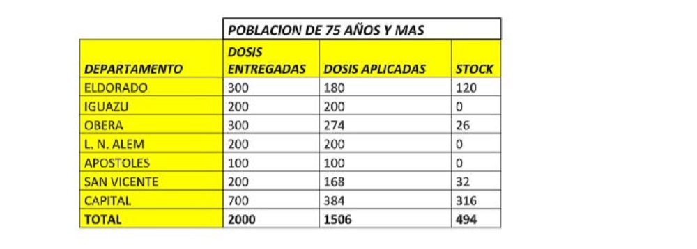 -Apóstoles: 100 dosis aplicas de un total de 100 dosis para esta primera etapa.