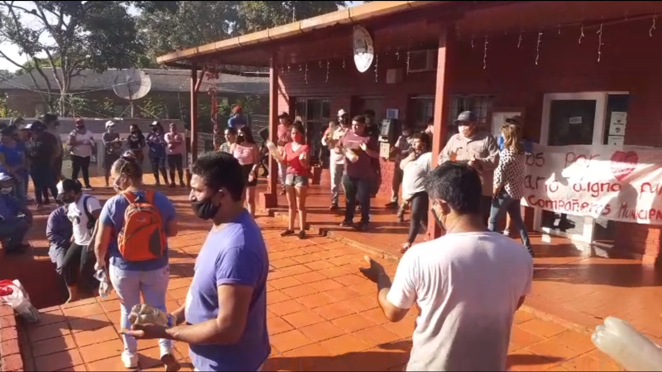 En este momento están realizando una manifestación frente a la Municipalidad de Colonia Delícia.