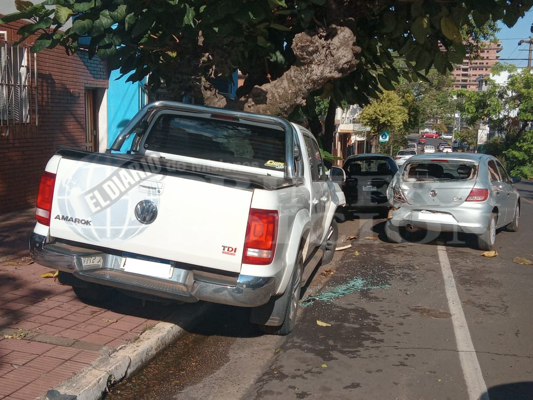 Un siniestro vial tuvo lugar hace instantes sobre calle Sarmiento casi Jujuy de Posadas. Un hombre se descompensó y chocó su vehículo contra automóviles estacionados.