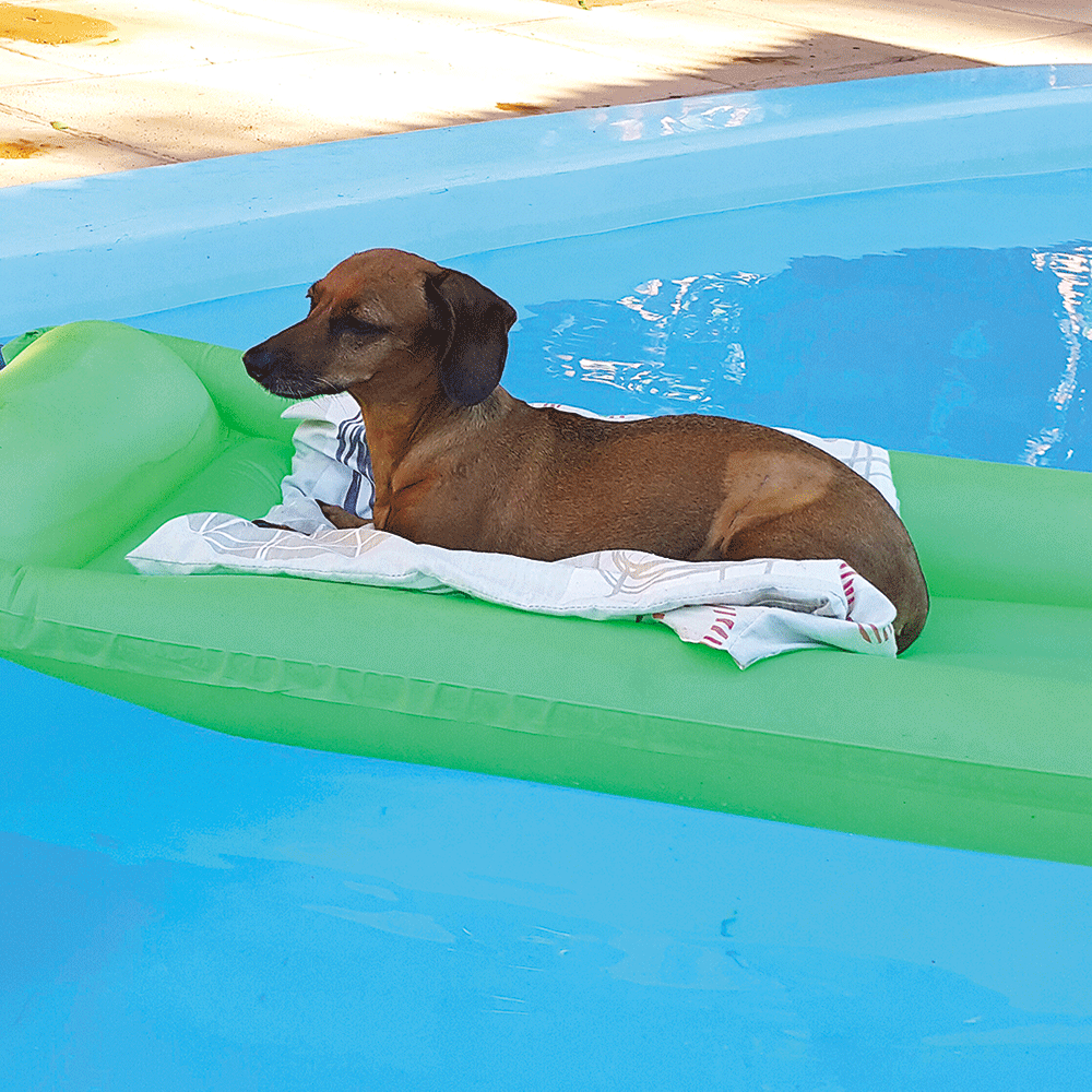 Es loca por el helado y come todo tipo de frutas y verduras. Y mientras espera el viaje a Brasil disfruta de la pileta.
