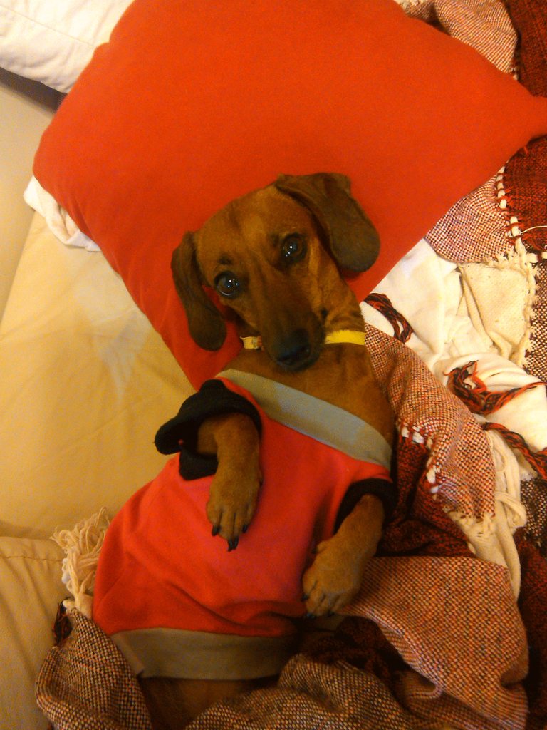 Cuando vamos a salir nos mira como diciendo ¿puedo ir? Nos mira y espera la seña o que yo le diga bueno ‘negra’ vamos y ahí queda loca, sabe que tiene que ponerse la correa y sabe todo en realidad. En invierno usa ropa porque es muy friolenta, tiene hasta bufanda.