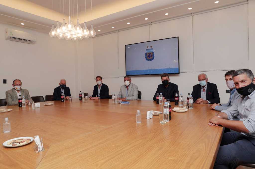 El presidente de la Asociación del Fútbol Argentino (AFA), Claudio Tapia, y otros dirigentes de clubes porteños se reunieron hoy con el vicejefe de Gobierno de la Ciudad, Diego Santilli, para comenzar a trabajar la vuelta del público a los estadios.