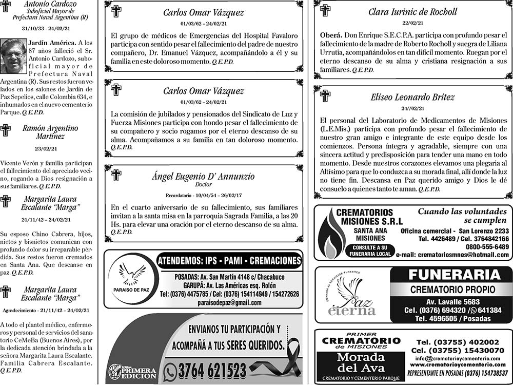 Tags: Fúnebres 26-02-2021