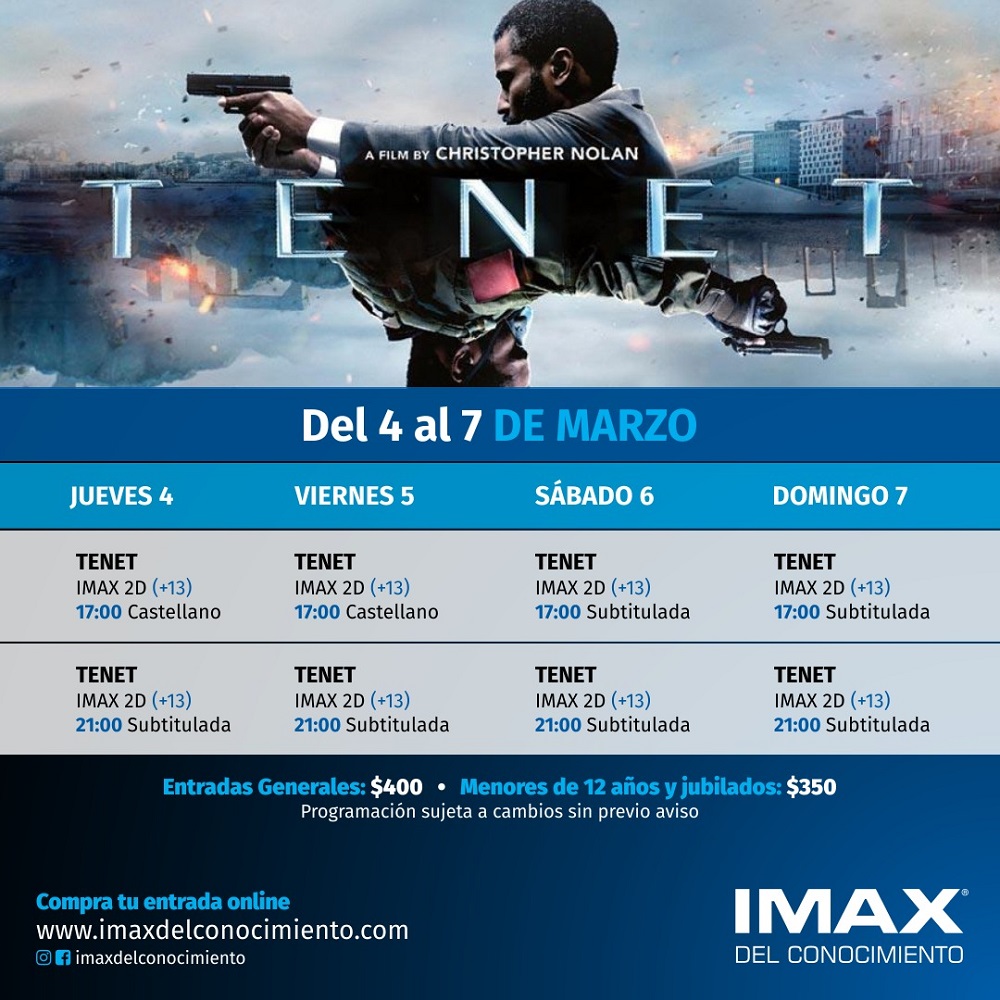 Con la emisión de la nueva película de Christopher Nolan “Tenet”, el cine vuelve a Posadas desde el próximo jueves en la sala IMAX del Parque del Conocimiento.