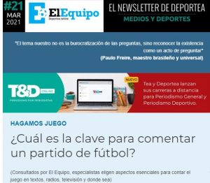 Deportea es la casa de estudios de donde salieron los periodistas deportivos más reconocidos del país y publica mensualmente un newsletter, destinada a “pensar la comunicación, el periodismo y los medios desde el deporte. O, al revés, un espacio en el que reflexionar sobre el deporte a partir del periodismo, de la comunicación y de los medios”, según cuenta su propio sitio web.